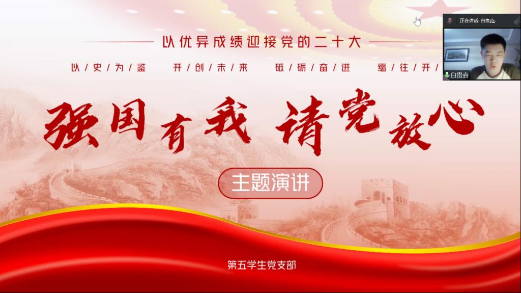 为迎接中国共产党成立101周年纪念日,进一步教育引导广大党员和团员青年把思想统一到党的精神上来,第五员工党支部于七月三日以“强国有我,请党放心”主题线上演讲的形式开展了本次活动。活动召开人仇佳俊同志,参会人第五员工党支部全体积极分子、发展对象、党员。