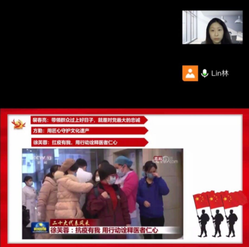 支部成员张晓林带领大家一起收看了二十大代表:林占熺、路生梅、裴春亮、方勤、徐芙蓉五位优秀党员的视频报道。林占熺长期从事菌草技术的研究、推广和教学,他视草如命,点草为金,常年奔走在中国乃至世界最贫穷的地方,为我国东西协作扶贫做出突出贡献,造福百余国;最美医生路生梅用半个多世纪的光阴,在祖国最需要的地方发光发热,恪守着最初对党的誓言;裴春亮为村里建学校、装路灯、修道路,打深水井,修灌溉渠,建设水库……不断带着乡亲过上好日子;方勤封闭值守80多日,用匠心守护文化遗产;徐芙蓉主动请缨,疫情防控期间,坚守到清零的最后时刻,用行动诠释医者仁心的大我精神。大家从一个个感人至深的故事中学习到了他们不畏艰险、甘于奉献、追求卓越的优秀品质。