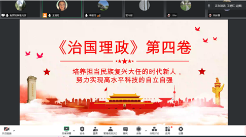 赵辉老师带领大家学习习近平关于“培养担当民族复兴大任的时代新人,努力实现高水平科技的自立自强”的部分讲话,大家对“教育是国之大计、党之大计”、“科技立则民族立、科技强则国家强”有更深入的认识和体会,对教师的重大责任深有感触。李建民老师带领大家学习了“新时代党和人民奋进的必由之路”部分章节,大家更加坚定认识“坚持党的全面领导是坚持和发展中国特色社会主义的必有之路”的深刻含义。王艳红老师带领大家学习了“统筹疫情防控和经济社会发展”的部分内容,深刻认识当前疫情防控的复杂性和艰巨性,我们要统一思想,坚定信心,坚持不懈,抓细抓实各项防疫工作。