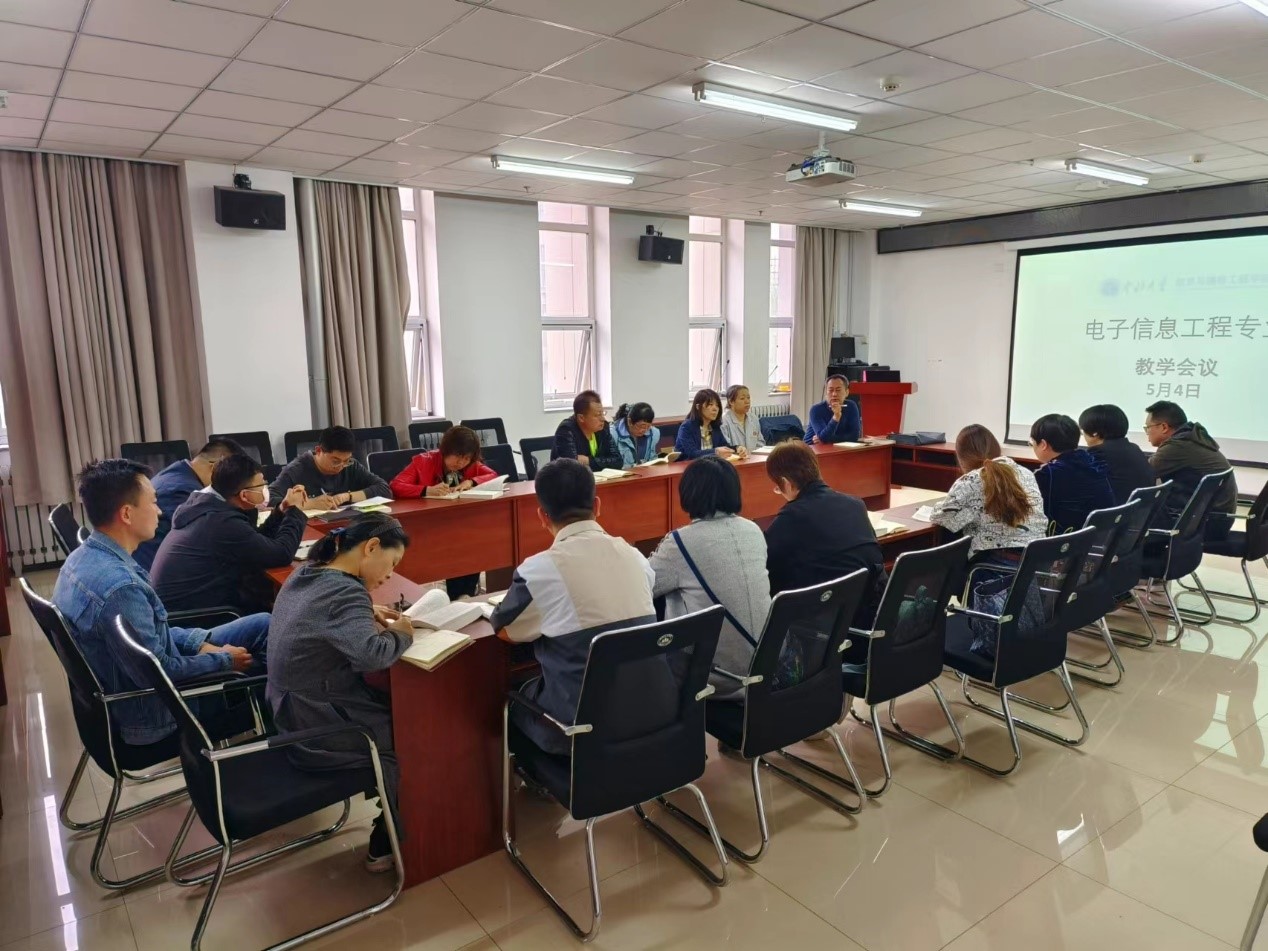 2023年5月4日,电子信息工程专业在科学楼B座715召开教学会议。会议由电子信息工程专业负责人李凯主持,电子信息工程专业教学、科研一线教师参加了会议。