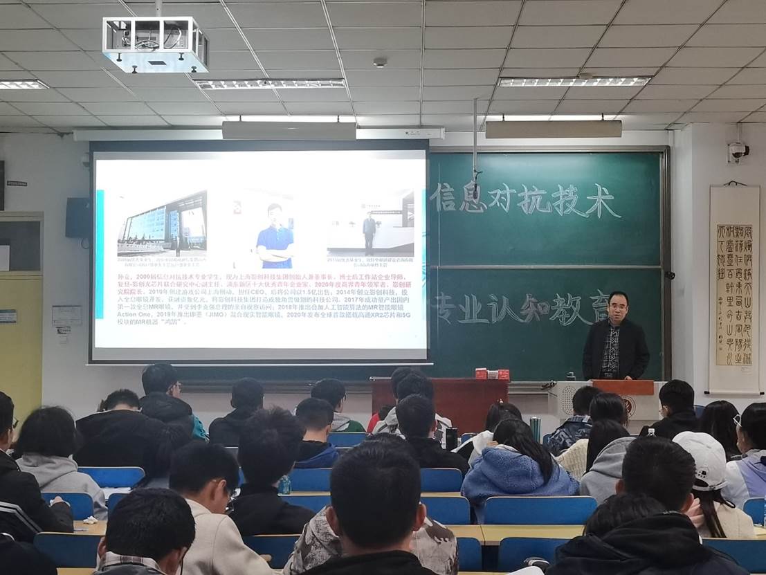 2021年10月19日,信息对抗技术专业负责人姚金杰受邀为2021级信息对抗技术专业新生作专业认知专题讲座。讲座上,姚老师从专业特色、教学科研、专业培养方案、实验条件、考研就业情况、优秀毕业生事例等六个方面对新生所学专业进行了全面介绍,帮助新生了解所学专业基本情况、尽快转变角色、适应大学专业学习,激发新生专业学习兴趣,增强员工专业学习动力,开启大学新征程,促进自身新发展。