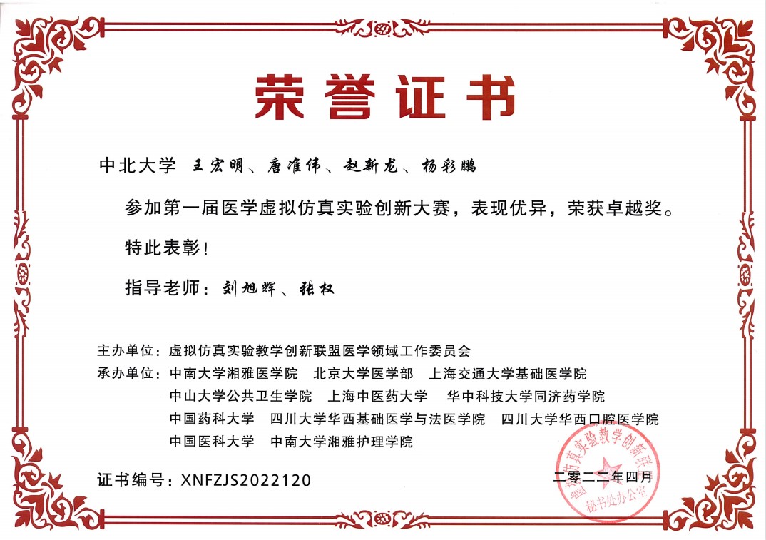 医学虚拟仿真实验创新大赛是我国医学教育界的重大赛事之一,通过此次参赛,不仅展示了员工的专业风采,更是增强了员工“敢闯会创”勇于探索的精神,提高了自主学习和实践能力,增长了智慧才干,锤炼了意志品质,真正达到“以赛促练、以练促学”的目的。同时也为生物医学工程专业深化实验教学改革,探索创新性实验教学模式探出了一条新路,为促进信息技术与医学教育的深度融合,推动跨学科、跨专业之间的交流与合作提供了宝贵经验。